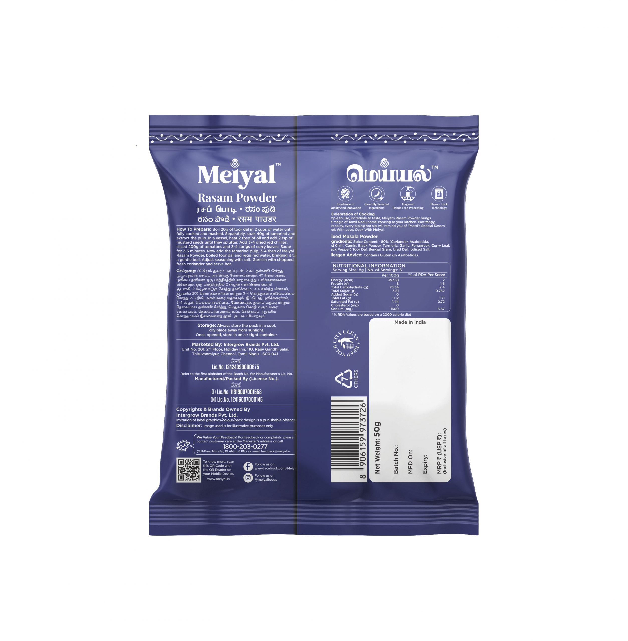 Ready to make the perfect rasam without all the hassle? Meiyal’s rasam powder is your new best friend in the kitchen! Made from a delightful mix of spices like cumin, coriander, black pepper, and a dash of hing, this powder packs all the flavours you need into one handy jar.